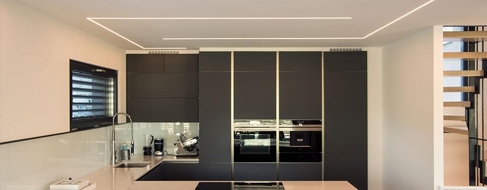 - É possível criar efeitos visuais com os perfis de iluminação linear, uma forma prática e elegante de transformar o ambiente e deixá-lo mais aconchegante.