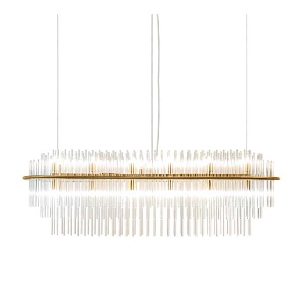 Com um design moderno e imponente, o pendente da linha Doppler é a peça de destaque ideal para quem busca sofisticação e impacto visual em ambientes residenciais ou comerciais. Seu acabamento em dourado brilhante com cúpulas de vidro transparente evoca luxo e requinte, enquanto seu formato escultural cria um ponto focal marcante na decoração. Este pendente não é apenas uma fonte de luz, mas um verdadeiro elemento artístico que transforma salas de jantar, halls de entrada e espaços integrados com elegância e personalidade.