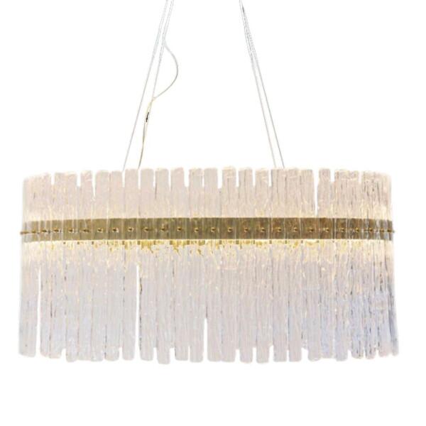 Transforme seu ambiente com a sofisticação única do Pendente Dourado e Transparente da linha Freddo, da consagrada Bella Iluminação. Com estrutura em metal dourado refinado e vidro translúcido, este pendente é a escolha ideal para quem busca estilo contemporâneo com toques clássicos. Seu design imponente e ao mesmo tempo minimalista o torna perfeito para salas de jantar, halls, escritórios e ambientes comerciais de alto padrão.