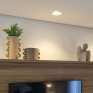Disponível nas cores branco ou preto micro texturizado, o spot comporta 1 lâmpada PAR20 (não inclusa) de até 50W, e tem soquete E-27. Com dimensões de 11,5cm x 3,8cm e nicho com diâmetro de 10,2cm, é indicado para uso interno.